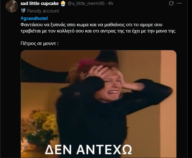 Η 1η σκηνή Κουκουράκη στο Grand Hotel προκάλεσε ενθουσιασμό στο Χ: Η γυναίκα φύλακας - άγγελός του