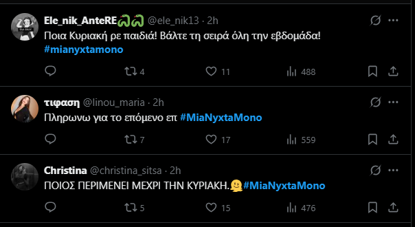 Η σειρά πάντως με τον παλμό που έχει και την πλοκή έχει εξελίξεις και ανατροπές από την αρχή της, για αυτό τον λόγο και έχει πλέον αποκτήσει ένα σταθερό κοινό και υψηλή τηλεθέαση.