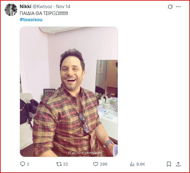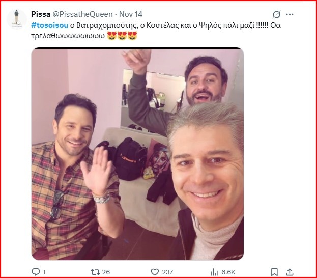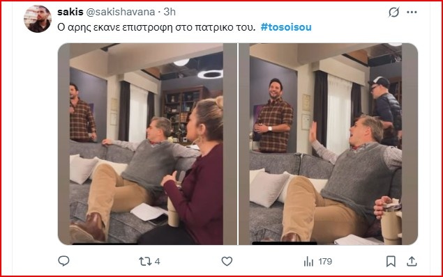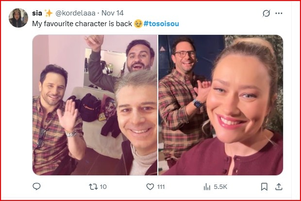 Και πλέον έχει επιστρέψει. Οι ηθοποιοί από το Σόι μας έδειξαν τα πρώτα backstage πλάνα του, στο πρώτο επίσημο reunion με τα τηλεοπτικά του αδέλφια, τον Μελέτη Ηλία και τον Αλέξανδρο Μπουρδούμη.