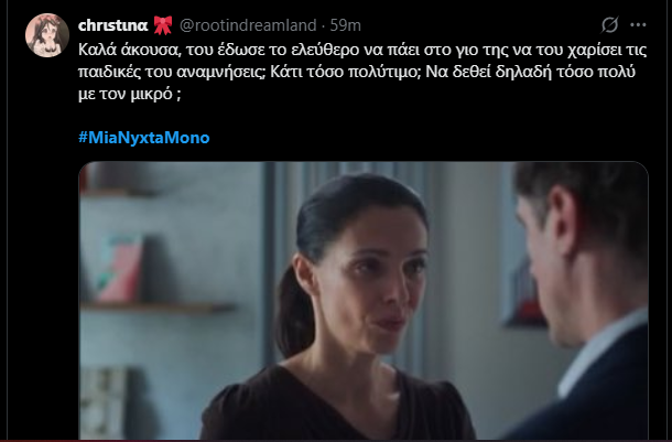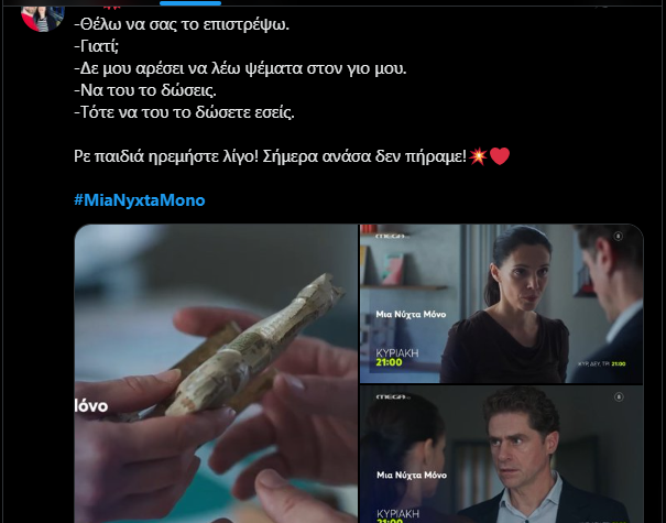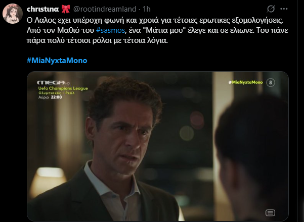 Δεν είναι εύκολο και είναι αρκετά σπάνιο για δύο ηθοποιούς να έχουν κάνει το ερωτευμένο ζευγάρι σε άλλη σειρά κατά το παρελθόν και στο «τώρα» επίσης, αλλά να καταφέρνουν να είναι διαφορετικοί. Από το Σασμό στο Μία νύχτα μόνο ο Δημήτρης Λάλος και η Μαριλίτα Λαμπροπούλου κατάφεραν να μην γίνουν βαρετοί.