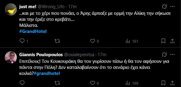 Αυτό που πολλοί περίμεναν, συνέβη χθες στο Grand Hotel με την ερωτική σκηνή ανάμεσα στην Αλίκη και τον Άρη. Καλλιόπη Χάσκα και Δημήτρης Κίτσος έγιναν ζευγάρι και ήδη κατάλαβαμε πως θα κινηθεί η σειρά από τον Ιανουάριο.