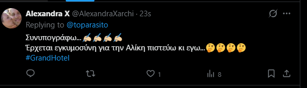 Το νέο - και επίσημα - ζευγάρι της σειράς η Καλλιόπη Χάσκα και ο Δημήτρης Κίτσος δίχασαν το κοινό στο Χ και κάποιοι έφτασαν στα άκρα προβλέποντας ακόμη και εγκυμοσύνη της Αλίκης.