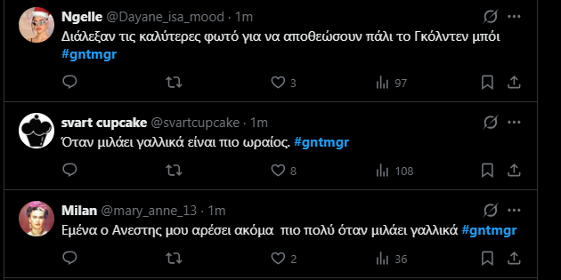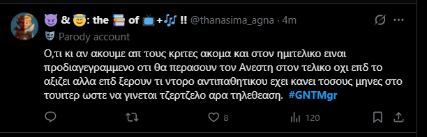 Οι περισσότεροι τηλεθεατές δεν το «χόρτασαν» το φετινό GNTMγιατί αριθμητικά είχαμε λιγότερα επεισόδια, σε σχέση με άλλες χρονιές. Και λόγω του φετινού σκληρού ανταγωνισμού, ορισμένοι άργησαν να το ανακαλύψουν. Πάντως τα τελευταία επεισόδια έχουν μεγάλο ενδιαφέρον ανεξάρτητα από την τηλεθέαση.