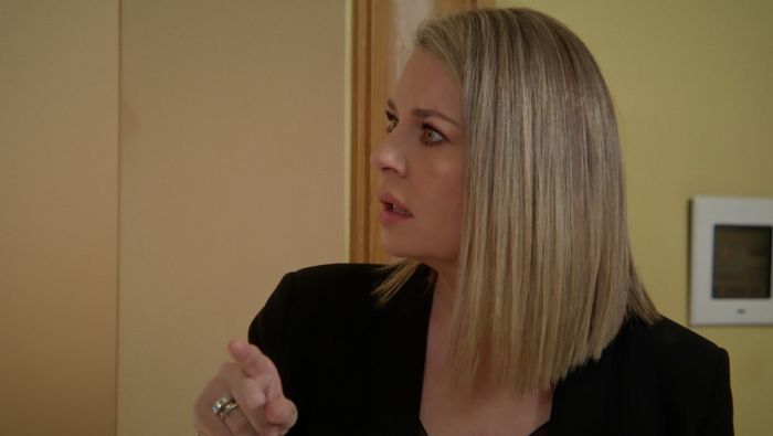 Απελπισμένα η Άννα αναζητά μια βοήθεια από τους υπηρέτες, αλλά δε τη βρίσκει.