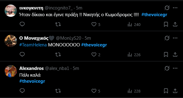 Δίκαιο το αποτέλεσμα με τον Κύπριο νικητή είπαν στο Χ στα σχόλιά τους. Ο τραγουδιστής είχε κάνει εντύπωση με τη φωνή του ήδη από τα blind auditions.