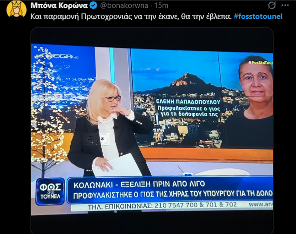 Πρώτο trend στο Χ το έκτακτο Φως στο Τούνελ, της Αγγελικής Νικολούλη. Η μαρτυρία, το βίντεο και τα λάθη που καθυστέρησαν τη μεγάλη αποκάλυψη της δολοφονίας.