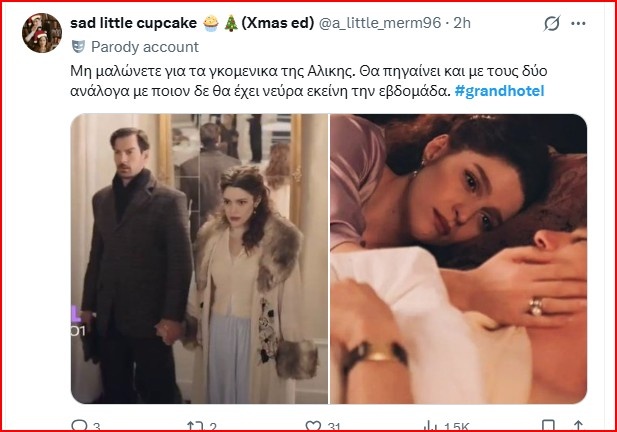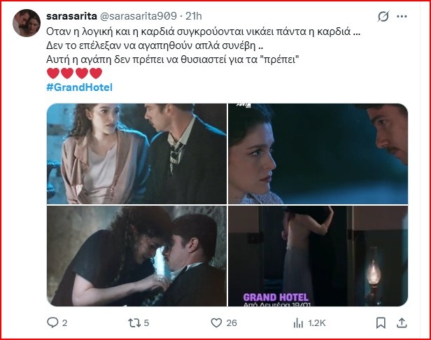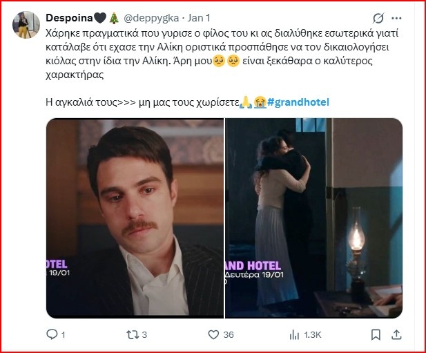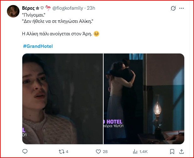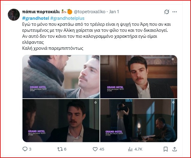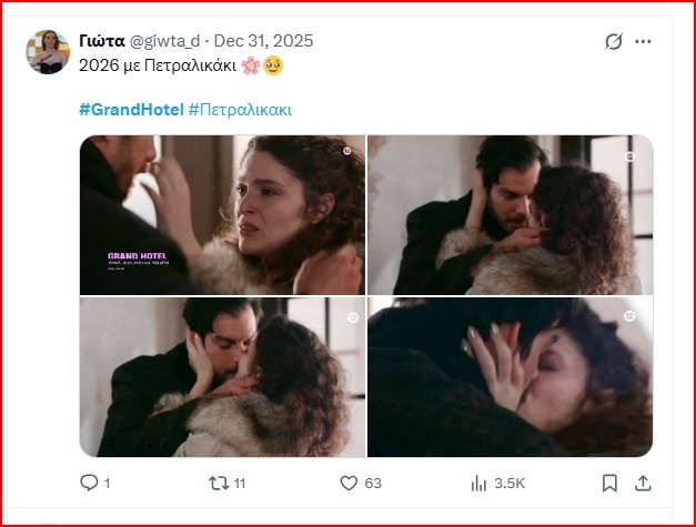 Η επιστροφή του Grand Hotel το 2026 θα είναι εντυπωσιακή και αυτό φαίνεται ήδη και από το πρώτο τρέιλερ που κυκλοφόρησε και αφορά στο πρώτο επεισόδιο που θα προβληθεί στις 19 Ιανουαρίου. Δεν είναι μόνο η επανασύνδεση Πέτρου και Αλίκης που προκαλεί αίσθηση ή το viral φιλί τους, αλλά και οι αντιδράσεις όλων των άλλων που βλέπουν τον Πέτρο ξανά ζωντανό.