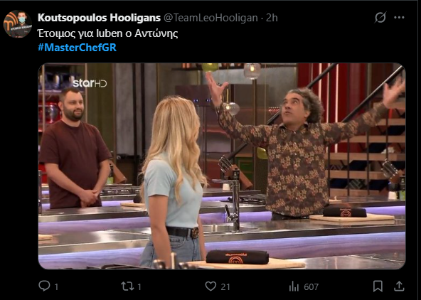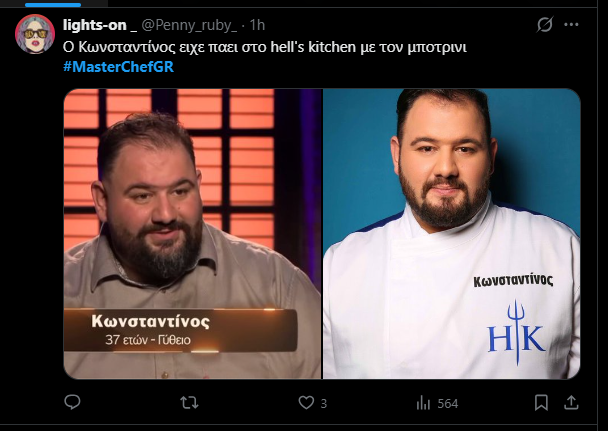 Τελικά εκείνος που έκανε το πιάτο που άγγιξε το τέλειο ήταν ο Κωνσταντίνος Χαλουλάκος, ένας από τους πιο ευδιάθετους και ήρεμους παίκτες. Και αν κάτι σου θύμισε, τότε δεν κάνεις λάθος, γιατί ο συγκεκριμένος υπήρξε παίκτης του Hell's Kitchen που παρουσίαζε ο Έκτορας Μποτρίνι το 2018 στον ΑΝΤ1.