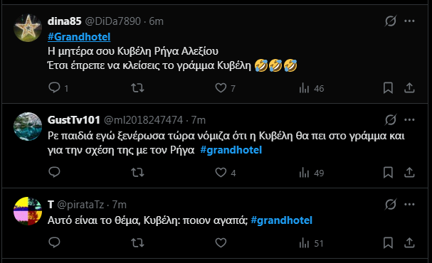 Τα ίδια ανάποδα θα έρθουν από σήμερα στο Grand Hotel, αφού στην ουσία σχεδόν κανένα από τα ζευγάρια της σειράς δεν θα είναι πλέον ζευγάρι. Πλην της Πελαγίας και του Βαγγέλη.