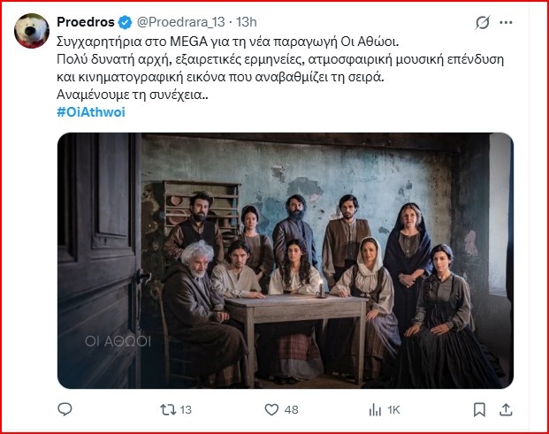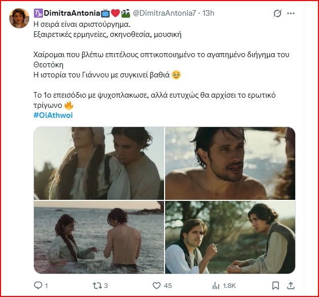 Και αυτό συμβαίνει με τη νέα σειρά του Mega, Οι Αθώοι. γιατί κατά την πρεμιέρα της προκάλεσε μεγάλη αίσθηση στο κοινό, για την αισθητική της, τον τρόπο απόδοσης μίας άλλης εποχής, για τις ερμηνείες, αλλά και για τη μουσική της.