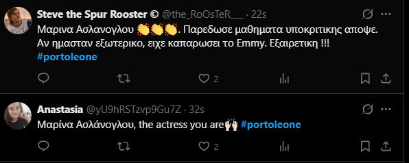 Η Μαρίνα Ασλάνογλου ήταν συγκλονιστική στην ερμηνεία της και το Χ είχε μόνο λόγια θαυμασμού.