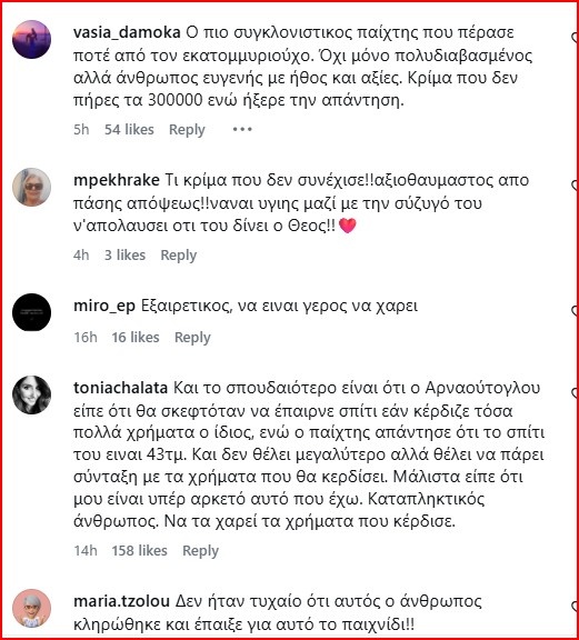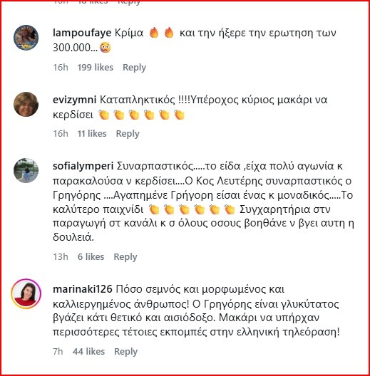 Ο καθηγητής Σκόνδρας άξιζε και με το παραπάνω αυτά τα χρήματα και αρκετοί τηλεθεατές του εξέφρασαν με σχόλια στα social media τον θαυμασμό τους για το ήθος του. Ανάμεσά τους και μαθητές τους που τον λατρεύουν.