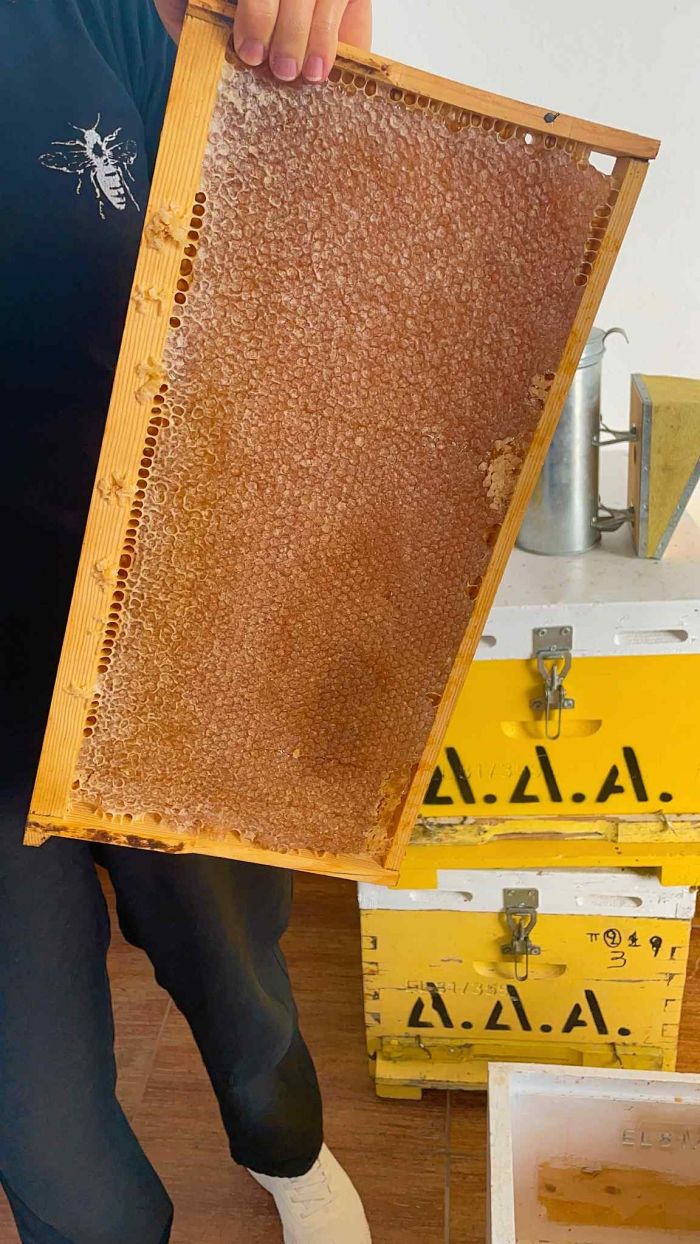 Εκεί μας υποδέχθηκε η κυρία Διονυσία, η οποία όχι μόνο μας μετέφερε όλες τις πληροφορίες για την αναπαραγωγή των μελισσών και τον τρόπο που της καθιστά πολύτιμες για τον πλανήτη μας, αλλά μας φίλεψε και τραγανούς λουκουμάδες με μέλι και παραδοσιακά κατιμέρια, κλείνοντας με τον πιο όμορφο τρόπο την περιήγησή μας στο νησί.