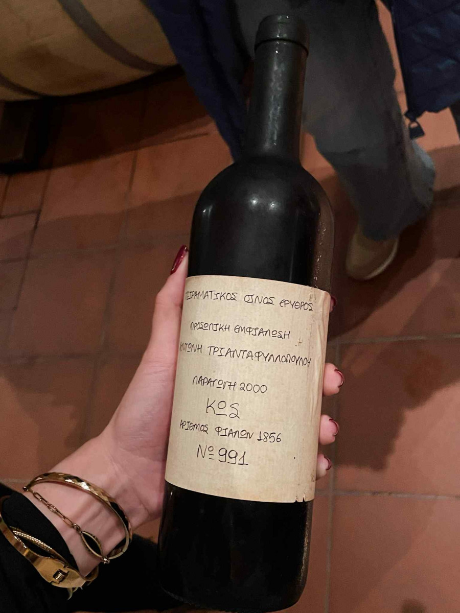 Η πρώτη μας στάση ήταν στο Οινοποιείο Χατζηεμμανουήλ, στην περιοχή Ασφενδιού και ήταν μια πραγματικά οικογενειακή εμπειρία. Εκεί μας υποδέχτηκε ο νεότερος της γενιάς, ο εγγονός της οικογένειας, ο Κωνσταντίνος, πριν μας συστηθεί και ο ίδιος ο Βασίλης Χατζηεμμανουήλ, που σήμερα είναι υπεύθυνος για το οινοποιείο. Η οικογένεια ασχολείται αποκλειστικά με το κτήμα εδώ και περίπου έναν αιώνα, κρατώντας ζωντανή την παράδοση από τον Νικόλα Χατζηεμμανουήλ, που το 1929 αναβίωσε την οινοποιητική τέχνη στην Κω, μέχρι και τη σημερινή τέταρτη γενιά.