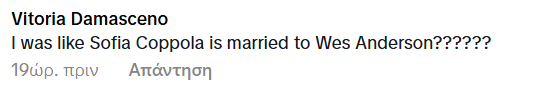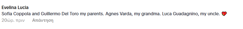 Νομίζω πως δεν έκανα τίποτα το ιδιαίτερο για να βγει αυτό το βίντεο στην fyp μου, αλλά αυτό το βίντεο έχει γίνει τόσο δημοφιλές που δεν θα μπορούσα να μην το δω με το που ανοίξω το TikTok. Αν δεν το έχεις δει ακόμα, στο προφίλ cinemonika θα βρεις ένα βίντεο με την TikToker να αναφέρεται στους διάσημους γονείς της. Η Sofia Coppola είναι η μητέρα της; Ο Wes Anderson ο πατέρας της; Ο Hayao Miyazaki ο παππούς της; Η απάντηση σε όλα είναι όχι, αλλά η ίδια τους αποκαλεί οικογένεια.