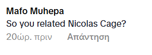 Ένας άλλος έγραψε: «Με τον Nicolas Cage έχεις κάποια σχέση;».
