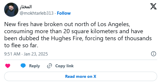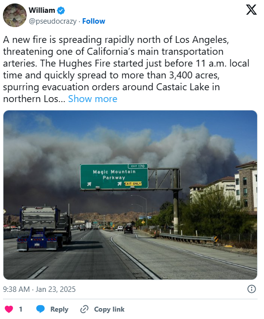Πάνω από 30.000 άνθρωποι καλούνται να εγκαταλείψουν τα σπίτια τους την ώρα που νέα φωτιά έχει ξεσπάσει στο Λος Άντζελες. Πόσο επικίνδυνη είναι η πυρκαγιά Hughes; Τα social media εκφράζουν και πάλι τη θλίψη τους.