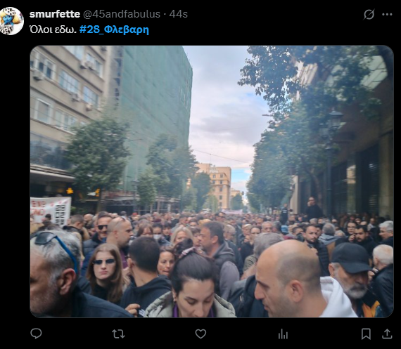 Με την πορεία για τα Τέμπη να συνεχίζεται, το Χ «πλημμύρισε» ξανά με hashtags #28_Φλεβαρη #τεμπη_εγκλημα #Δεν_Εχω_Οξυγονο .