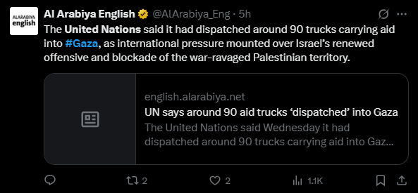 Ο ΟΗΕ επιβεβαίωσε την Τετάρτη ότι συγκέντρωσε και άρχισε να αποστέλλει περίπου 90 φορτηγά με ανθρωπιστική βοήθεια προς τη Γάζα, σηματοδοτώντας την πρώτη άφιξη βοήθειας στον παλαιστινιακό θύλακα από τις αρχές Μαρτίου.