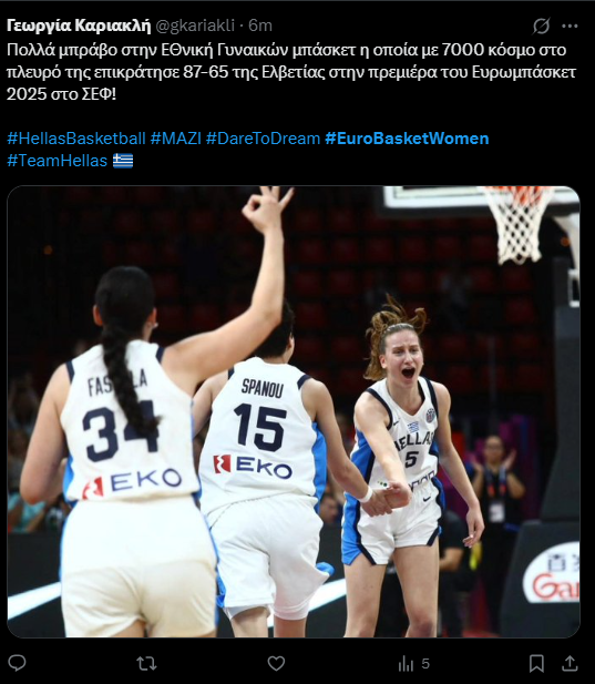 Με νίκη για την Ελλάδα έκανε πρεμιέρα το EuroBasket Γυναικών 2025 και όλοι ήταν εκεί για τα κορίτσια της εθνικής μας.