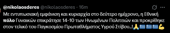Η νίκη των γυναικών προκάλεσε την «έκρηξη» θαυμασμού των χρηστών στα social media με τον κόσμο να θαυμάζει τις αθλήτριες, λέγοντας μερικά από τα πιο εύστοχα σχόλια.
