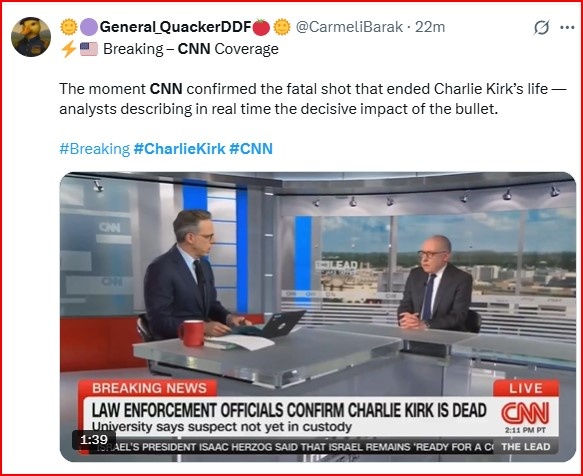 «Ο μεγάλος, θρυλικός Charlie Kirk είναι νεκρός. Κανείς δεν κατανοούσε καλύτερα ή δεν την είχε την καρδιά της νεολαίας στις ΗΠΑ από τον Charlie» είπε ο πρόεδρος των ΗΠΑ Donald Trump στο έκτακτο διάγγελμά του, μετά τη δολοφονία του Kirk κατά τη διάρκεια ομιλίας του με θέμα την εκπαίδευση, σε Πανεπιστήμιο της Utah.