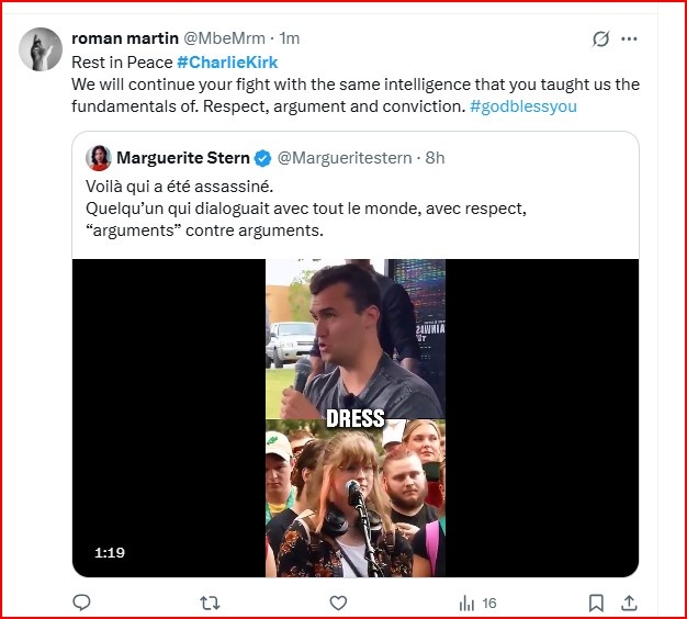 Και ενώ ο πρόεδρος των ΗΠΑ ζητούσε από τους αμερικανούς πολίτες να δεσμευτούν στις αρχές του ελεύθερου λόγου, του δικαίου, της αφοσίωσης στην πατρίδα και στην αγάπη για τον Θεό, για τις οποίες πολεμούσε ο Kirk, το περιοδικό Times συγκλονίζει με το κατακόκκινο εξώφυλλο του, που αναφέρεται στη δολοφονία του και στην έξαρση της βίας, πολιτικής ή μη.