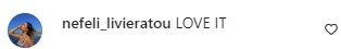 Στη θέα των φωτογραφιών, τόσο η αδερφή της, Νεφέλη όσο και ο μπαμπάς τους, Λάμπης Λιβιεράτος, έσπευσαν να σχολιάσουν με ενθουσιασμό για την αγαπημένη τους.