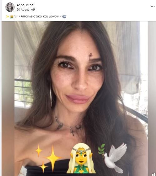 Ενεργή ξανά στο Facebook είναι η Άσπα Τσίνα, η οποία έχει κλείσει μεν τον λογαριασμό της στο Instagram αλλά έχει ενεργό το προφίλ της στο Facebook.