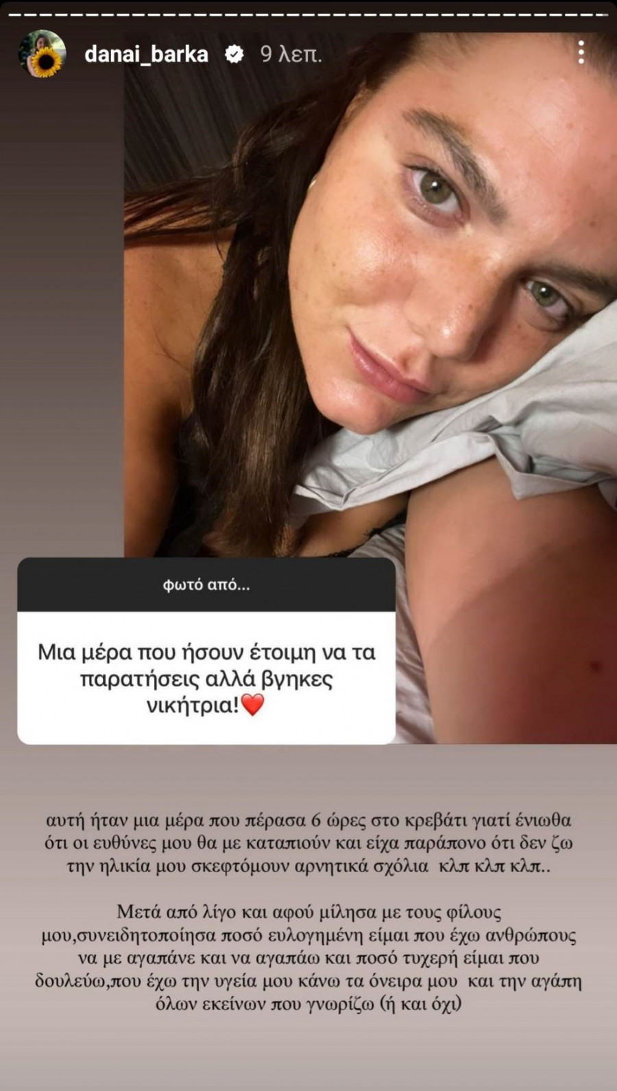 Πριν από όλο αυτό το γιορτινό ξεφάντωμα της Δανάης Μπάρκα με τη Βίκυ Καγιά, προηγήθηκε ένα Q&A της πρώτης με τους followers της. Η Δανάη, μεταξύ άλλων, ερωτήθηκε αν υπήρξε κάποια μέρα που να σκέφτηκε να τα παρατήσει, αλλά τελικά βγήκε νικήτρια. Και παραδέχθηκε πως υπήρξε τέτοια στιγμή στη ζωή της.