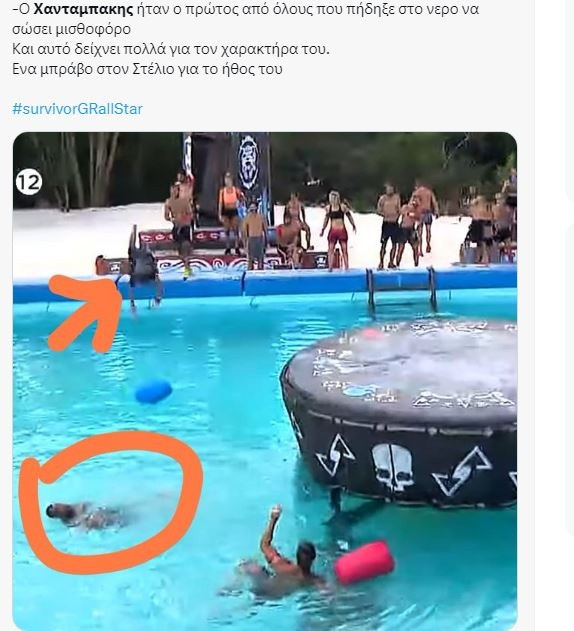 Και για όσους θεωρούν πως ο Χανταμπάκης υποκρίνεται, ο Στέλιος ήταν εκείνος που πρώτος κατάλαβε πως κάτι δεν πάει καλά με τον Κώστα Αναγνωστόπουλο και έσπευσε να βουτήξει για να τον βοηθήσει.
