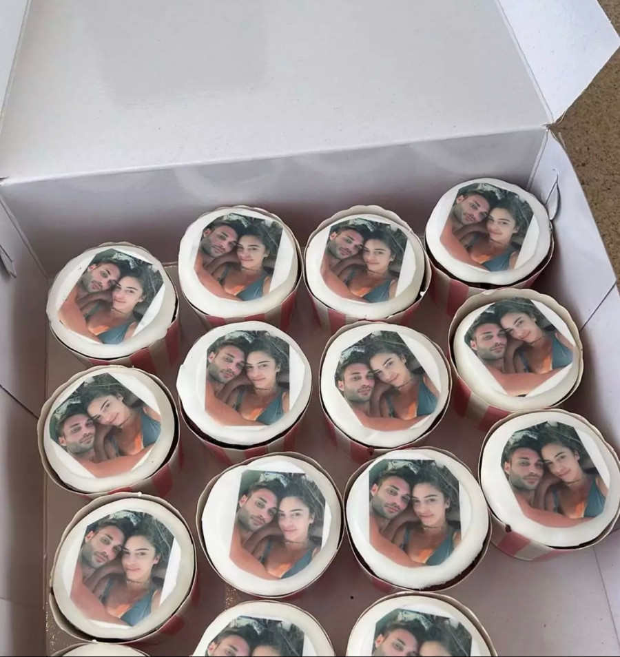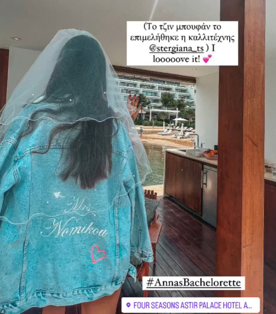 Οι εκπλήξεις διαδέχονταν η μία την άλλη, ενώ την παράσταση έκλεψε ένα denim jacket που έγραφε Mrs Nomikou, μερικά γλυκά με φωτογραφία των μελλοντικών συζύγων, αλλά και ένα λουλουδένιο βραχιόλι που της φόρεσε η αδερφή της.