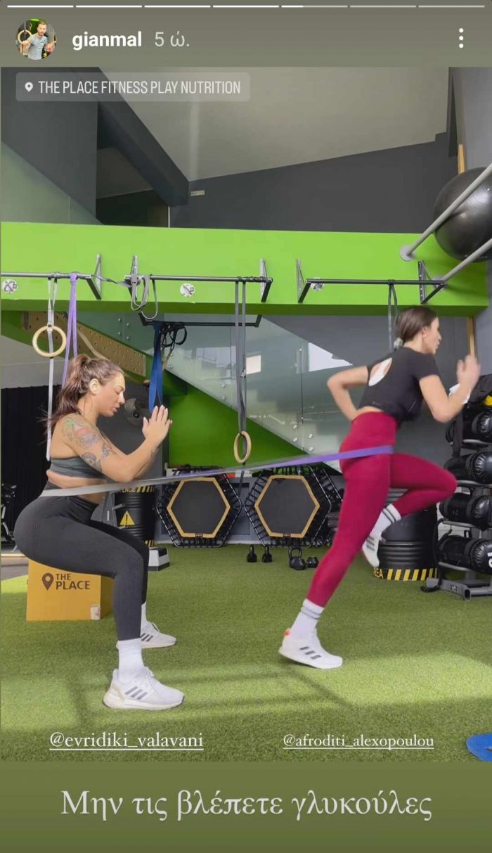 Αυτή τη φορά μπορεί η ίδια να έδειξε στους followers της τη γυμναστική που κάνει με τη φίλη της, όμως ο γυμναστής της «πρόδωσε» μέσα από δική του ανάρτηση πως στο ίδιο μέρος και την ίδια ώρα που κάνει τη γυμναστική της η Ευρυδίκη Βαλαβάνη βρίσκεται και ο Γρηγόρης Μόργκαν, αφού παρότι οι δυο τους δηλώνουν φίλοι η ίδια δεν έκανε κάποια ανάρτηση και με εκείνον - όπως έκανε με τη φίλη της - ενώ στο βίντεο θα μπορούσε να πει κάποιος που δεν τους γνωρίζει ότι τυχαία έβλεπε δύο ανθρώπους στον ίδιο χώρο απλά και μόνο για να κάνουν γυμναστική.