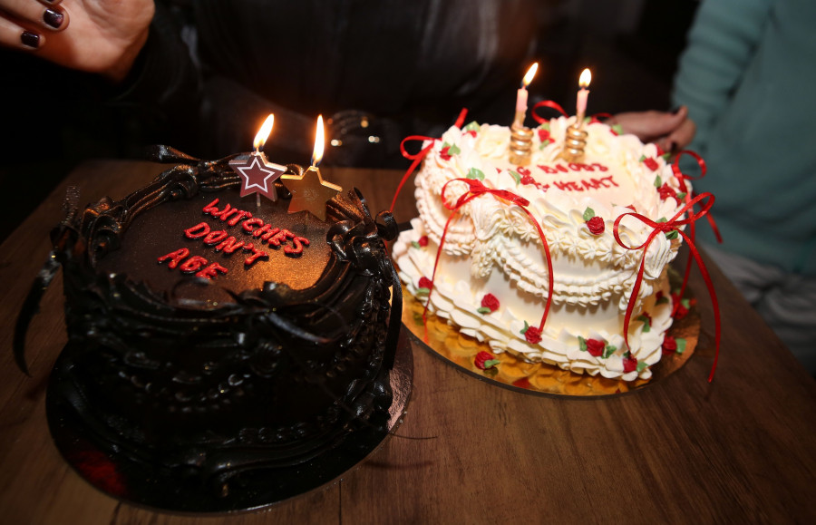 Όχι μία αλλά δύο τούρτες έσβησε η Βάνα Μπάρμπα και συγκεκριμένα μια λευκή τούρτα σε σχήμα καρδιάς και μια μαύρη η οποία έγραφε χιουμοριστικά: «Οι μάγισσες δεν μεγαλώνουν».