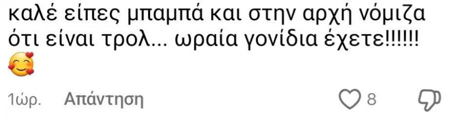 Ανάμεσα στα σχόλια, όπως κάθε φορά που η Μαρίνα είναι μαζί με τον μπαμπά της είτε σε βίντεο είτε σε φωτογραφία, ήταν και αυτά όσων δεν πίστευαν πως πρόκειται για μπαμπά και κόρη.