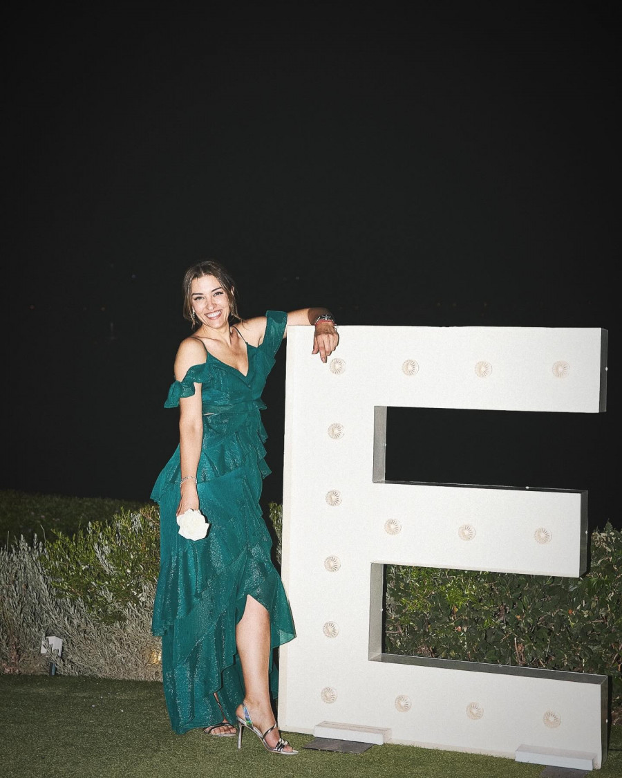 Γίνεσαι νονά το καλοκαίρι και δεν ξέρεις τι να φορέσεις; Η Ιωάννα Φουρέιρα ήταν η πιο stylish νονά του καλοκαιριού μέχρι στιγμής και μας δίνει ιδέες και για τα δικά μας outfits στις βαφτίσεις της σεζόν. Η ίδια επέλεξε ένα maxi ασύμμετρο φόρεμα με βολάν και off shoulder ντεκολτέ. Το σκούρο πράσινο χρώμα του σμαραγδιού είναι μία πολύ πρωτότυπη απόχρωση, που δεν βλέπουμε συχνά το καλοκαίρι.
