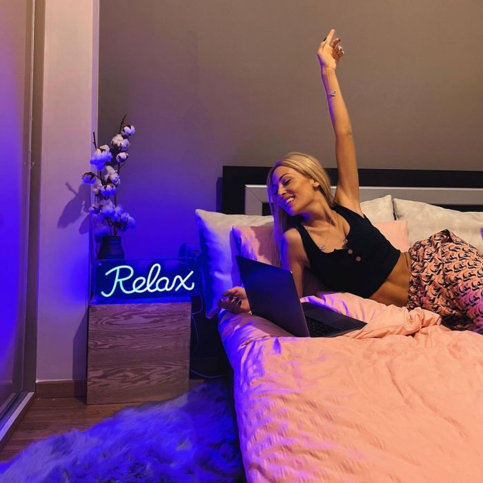 Η 34χρονη παρουσιάστρια και ραδιοφωνική παραγωγός μπορεί να βρίσκεται τώρα στο Πήλιο, ωστόσο στην Αθήνα βρίσκει καταφύγιο στο μοντέρνο και cosy διαμέρισμά της. Αρκετές φορές η ίδια έχει δείξει γωνιές του σπιτιού της αλλά και την κρεβατοκάμαρά της με την cool led επιγραφή που «φωνάζει» χαλάρωση.