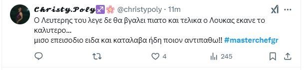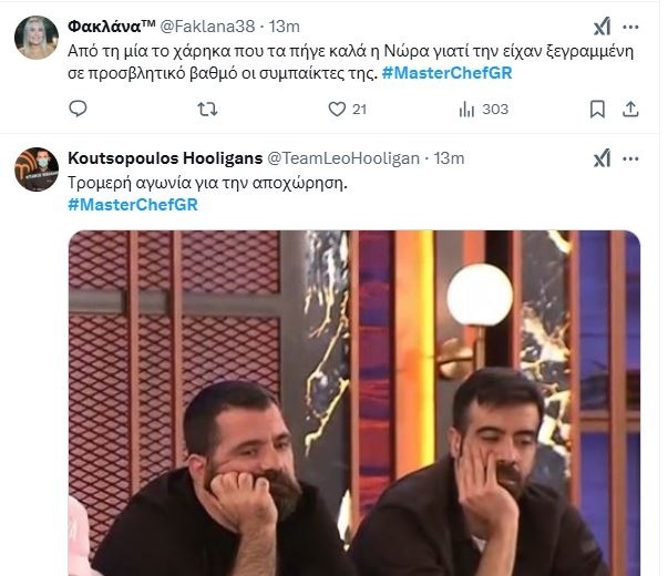 Στο εκτός της κουζίνας περιβάλλον, είδαμε χθες τους παίκτες στο σπίτι πριν τη διαδικασία της αποχώρησης να βρίσκονται σε ένταση. Με τον Λευτέρη να μιλά για πισώπλατα μαχαιρώματα και εμπάθεια από τους συμπαίκτες του και τον Λουκά να χαρακτηρίζει την κίνησή του ως προδοσία και να υπόσχεται κίνηση ματ.