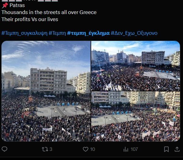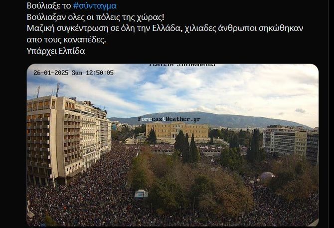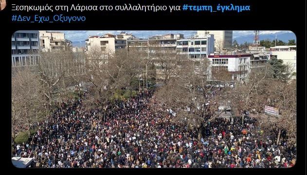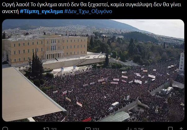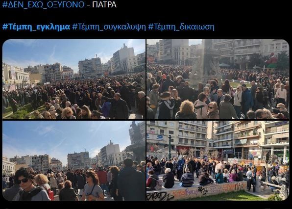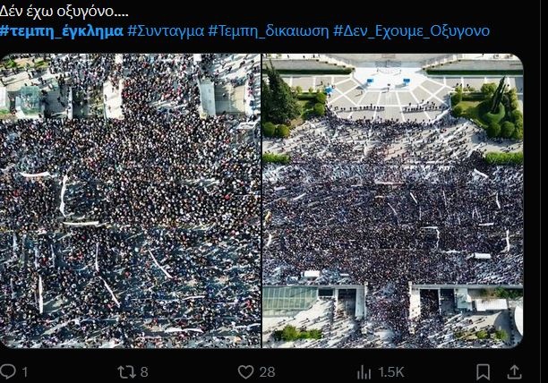Με τα hashtags #τεμπη_εγκλημα, #συνταγμα και #δεν_εχουμε_οξυγονο να «τρεντάρουν» από νωρίς, το Χ γέμισε με ντοκουμέντα από όλη την Ελλάδα και το εξωτερικό.