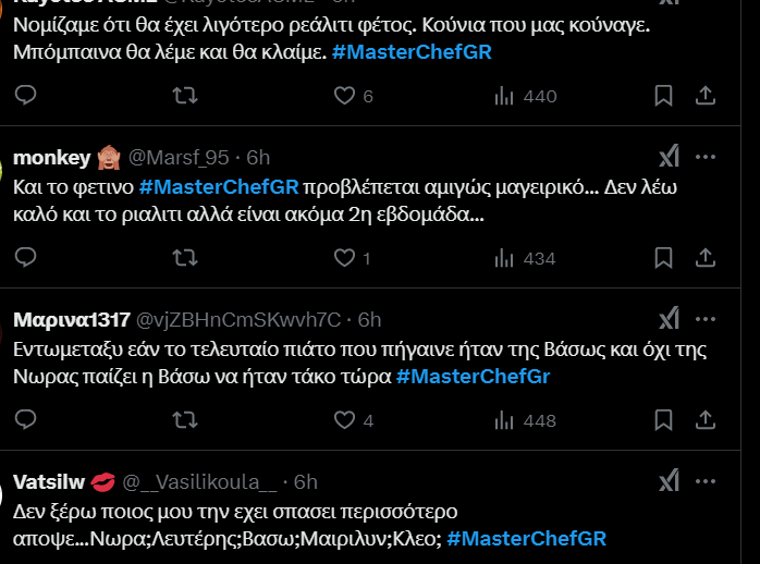 Το κοινό στο X, φάνηκε πάντως να πέφτει από τα σύννεφα με τον τρόπο που το «ριάλιτι» στο MasterChef βγήκε τόσο νωρίς και τόσο μπροστά.
