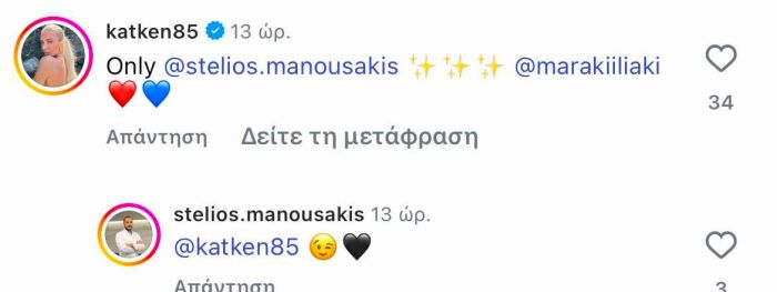 Η Μαρία Ηλιάκη έκανε και story στο οποίο έγραφε πως η Κατερίνα Καινούργιου ήταν η guest star στο νέο της βίντεο, ενώ η παρουσιάστρια του Super Κατερίνα σχολίασε «Μόνο Στέλιος Μανουσάκης», με τον γνωστό γυναικολόγο να απαντά με emoji.