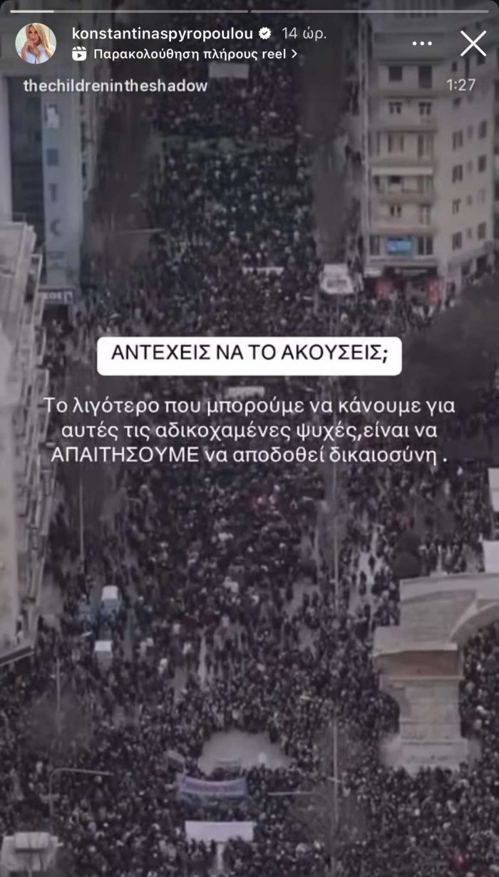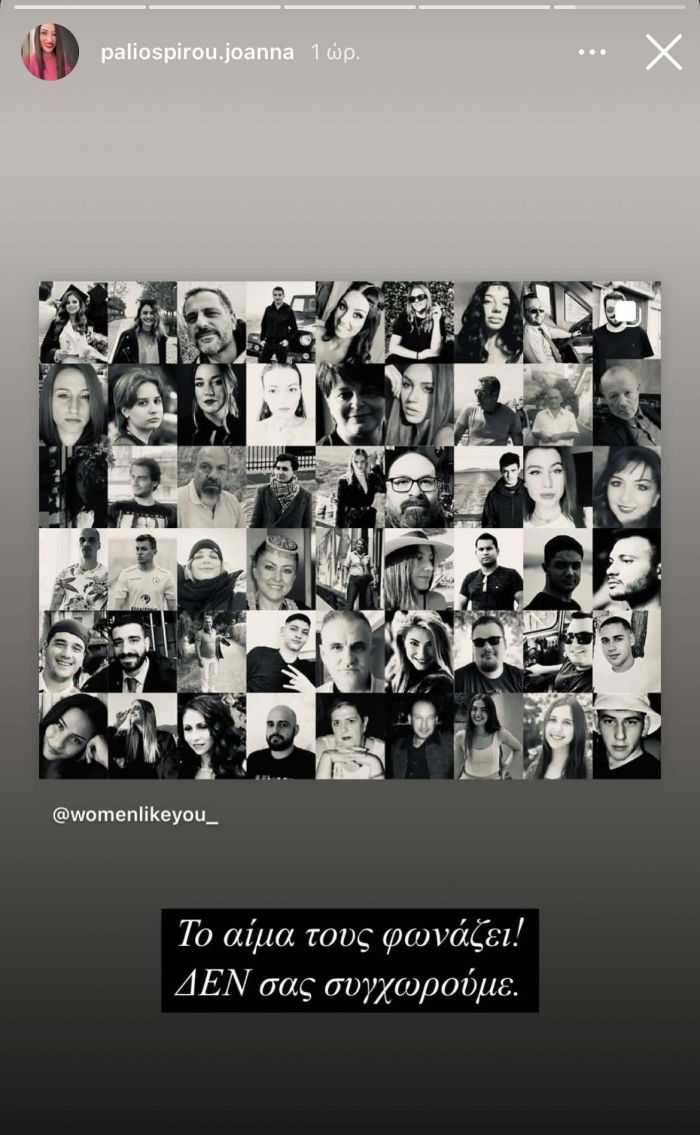 Ανάμεσά τους και σχεδόν όλος ο καλλιτεχνικός κόσμος, οι αθλητές, δημοσιογράφοι, παρουσιαστές, ακόμα και influencers, άφησαν για λίγο την καθημερινότητά τους για να δηλώσουν την συμπαράστασή τους. Με αναρτήσεις, αναδημοσιεύοντας δηλώσεις των συγγενών των θυμάτων, με ακόμα και story με μαύρο φόντο ή βγαίνοντας και οι ίδιοι στον δρόμο δήλωσαν «παρόντες».