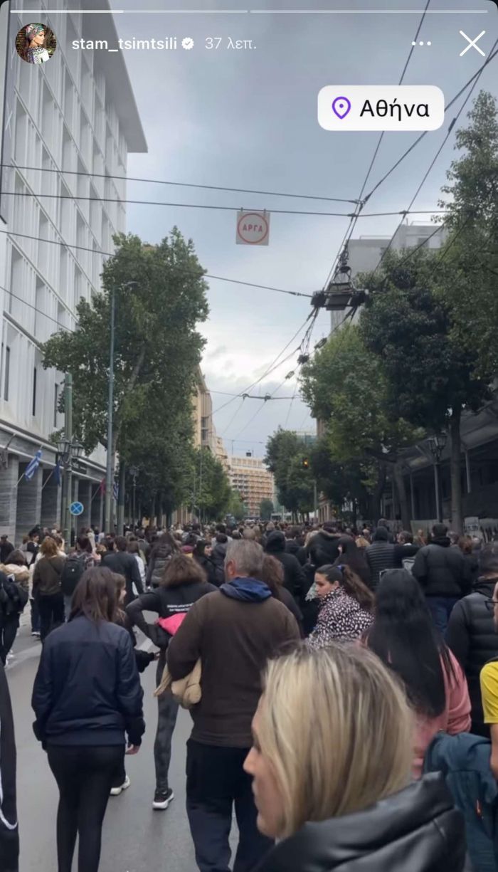 Ο Λευτέρης Πετρούνιας, η Αθηνά Οικονομάκου, η Σταματίνα Τσιμτσιλή, η Έλενα Ασημακοπούλου και η Κατερίνα Παπουτσάκη με φόντο τον κόσμο στο κέντρο της Αθήνας έδειξαν την παρουσία τους και τη στήριξή τους στους συγγενείς των θυμάτων.
