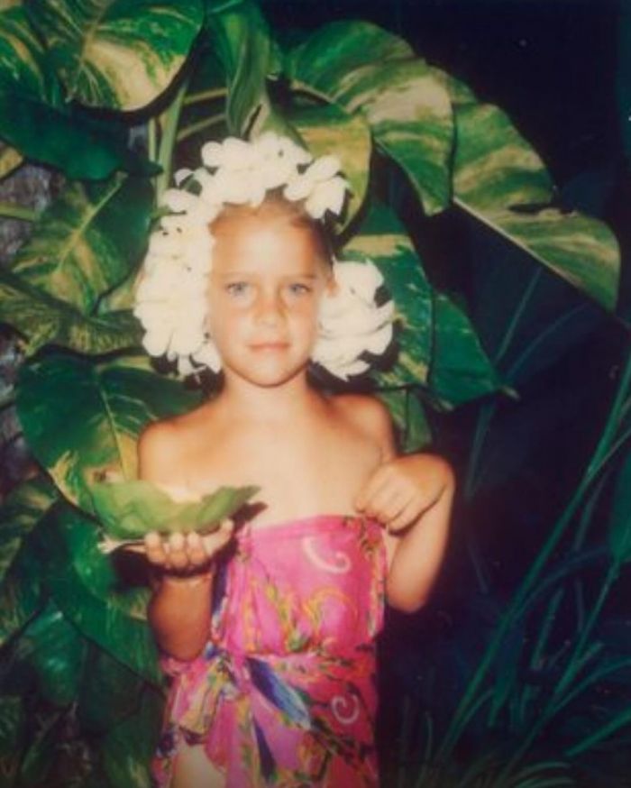«Η 1η φωτογραφία τραβήχτηκε στην Ελλάδα όταν ήμουν 6 ετών. Φορούσα ήδη τα τυχερά μου βραχιόλια με χάντρες, νιώθοντας σαν στο σπίτι μου. Η 9η φωτογραφία είναι με τον πατέρα μου, το ίδιο ταξίδι στην Ελλάδα, το τελευταίο μας ταξίδι - φορώντας το αγαπημένο μου μπλουζάκι όλων των εποχών που έγραφε «Κέρκυρα». Παρατήρησα μόνο αυτές τις λεπτομέρειες τώρα».