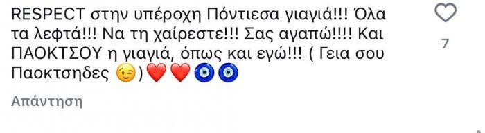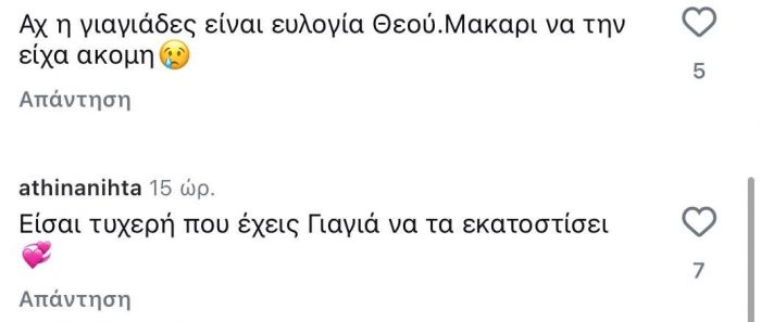 Φυσικά αυτή η χαριτωμένη απάντηση ευνθουσίασε τους θαυμαστές της Νατάσας Θεοδωρίδου, οι οποίοι τόνισαν πόσο τυχερή είναι η τραγουδίστρια που έχει στο πλευρό της τη γιαγιά της.