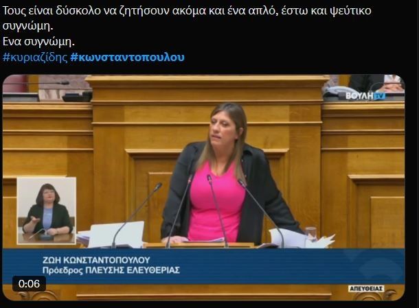 Δεν είναι η πρώτη φορά που η Ζωή Κωνσταντοπούλου είδε το όνομά της να γίνεται πρώτο trend στο Χ, όμως ο λόγος για τον οποίο αυτό έγινε σήμερα, ανήμερα της γιορτής της γυναίκας, μάλιστα, μάλλον ήταν κάτι που δεν περίμενε -ούτε κανείς άλλος.