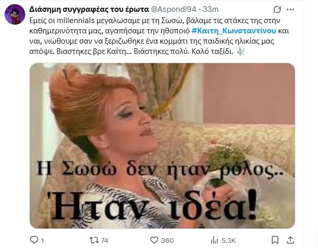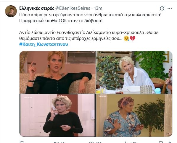 Το Χ αποχαιρέτησε με συγκίνηση την αγαπημένη μας ηθοποιό.