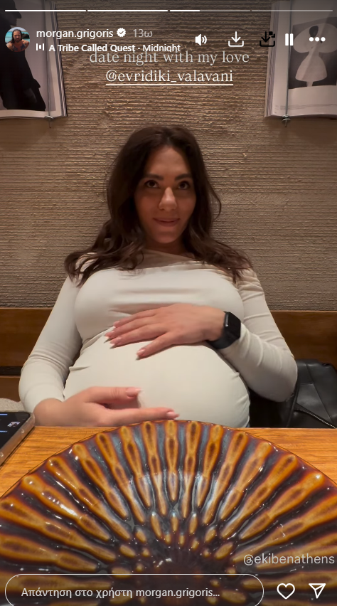 Ο Γρηγόρης Μόργκαν αρκέστηκε στο να δημοσιεύσει ένα βίντεο με την «αγάπη του», όπως έγραψε, να χαϊδεύει τρυφερά την κοιλιά της που ήταν ακόμα πιο φουσκωμένη - λογικό αν σκεφτεί κανείς πως βρίσκεται στο 3ο τρίμηνο της εγκυμοσύνης της.