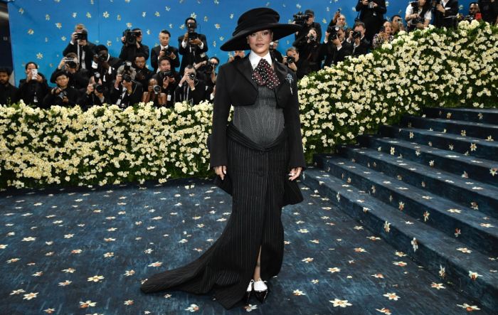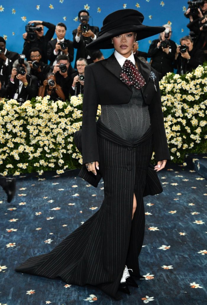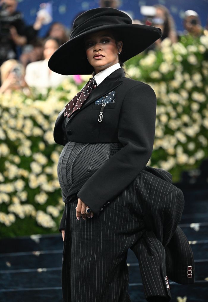Η Rihanna ήταν η τελευταία που έφτασε στην φιλανθρωπική εκδήλωση για το Μητροπολιτικό Μουσείο Τέχνης της Νέας Υόρκης και αγκαλιάζοντας τη φανερά φουσκωμένη κοιλιά της, αποκάλυψε επίσημα και με τον πιο μοδάτο τρόπο την εγκυμοσύνη της. Το φετινό concept άλλωστε, ήταν το «Superfine: Tailoring Black Style», το πρώτο από το 2003 που επικεντρώθηκε αποκλειστικά στα ανδρικά ρούχα.