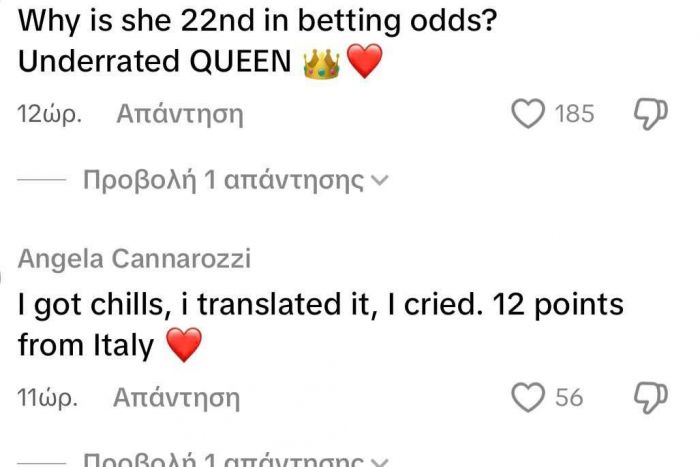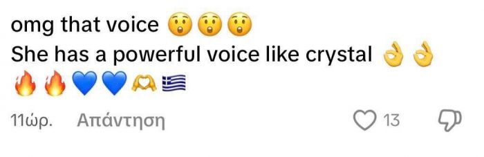 Τα σχόλια στο βίντεο ήταν άκρως θετικά, ενώ πολλοί ήταν αυτοί που τόνισαν πως δεν εξηγείται η 22η θέση στα προγνωστικά με βάση την τόσο καλή φωνή της.